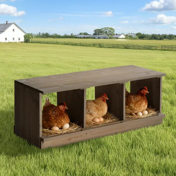 Nesting Boxes For Chickens, Wooden Chicken Nesting Box, Laying Eggs Nest Box For Chickens Hens Ducks, Gray, 3 Compartments